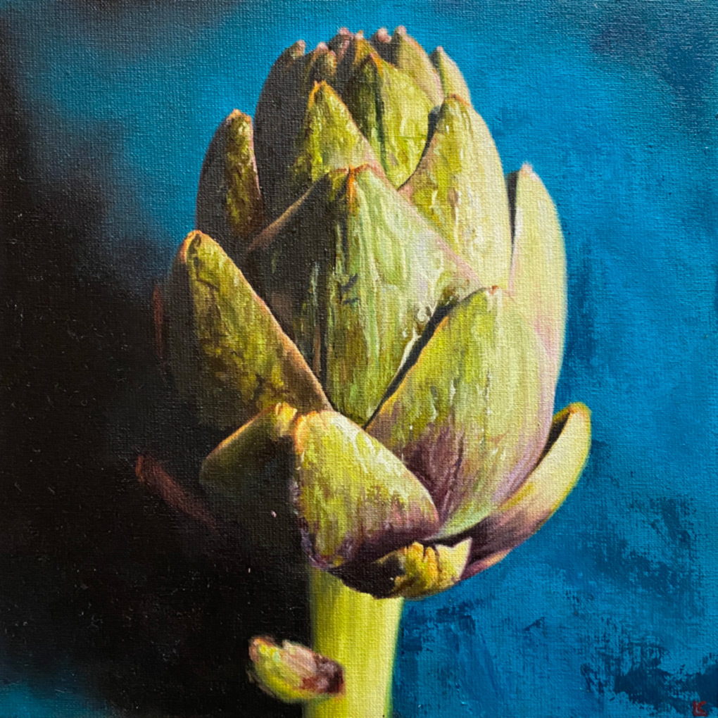 Artischocke, Öl auf Leinen-Malplatte, 20×20 cm