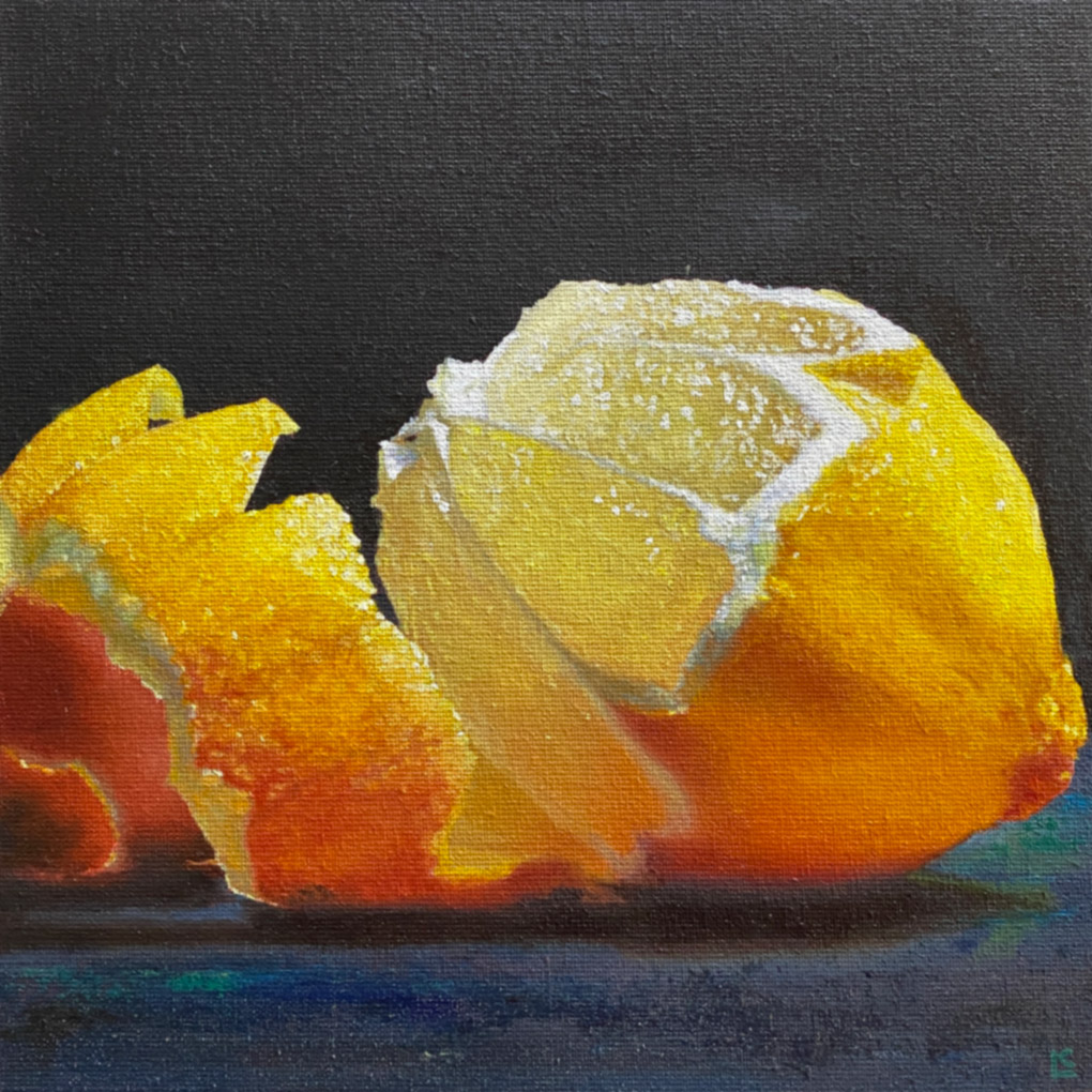 Zitronen-Stilllebene, Öl auf Leinen-Malplatte, 20×20 cm